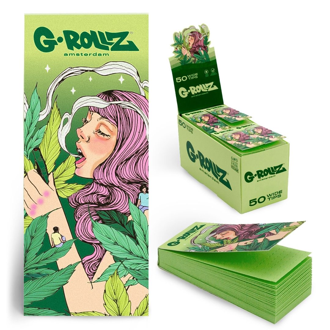 GROLLZ Collector Filter Tips are 2,5cm wide x 6cm long and each filterboook contains 50 filtertips. There are 24 filterbooks in each Display.