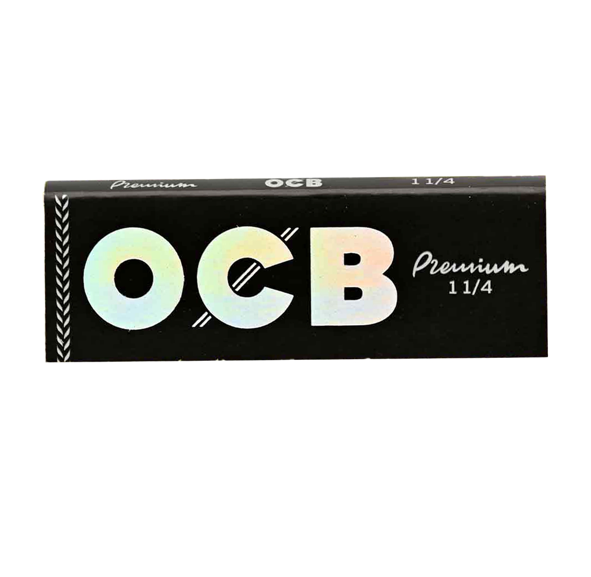 OCB Premium 1 1/4 papers offer ultra thin, slow burning performance with included perforated filter tips for convenience. Each booklet has 50 papers and tips, and the display box contains 25 booklets of this premium quality rolling paper from OCB.