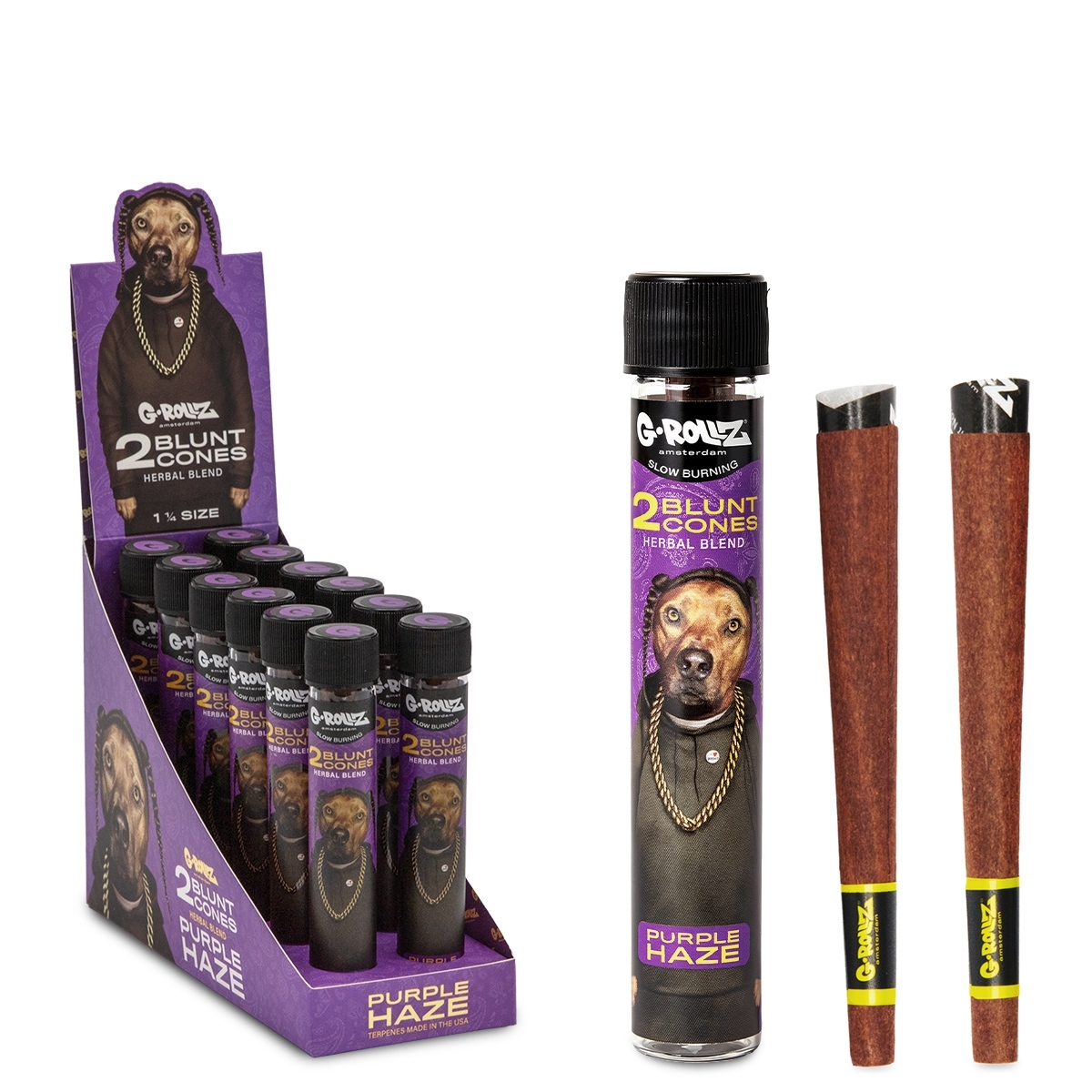 G-Rollz | 'The Dog' 1¼ Size Terpene Infused Cones 'Purple Haze' (12 Pack Display, 24 Cones)