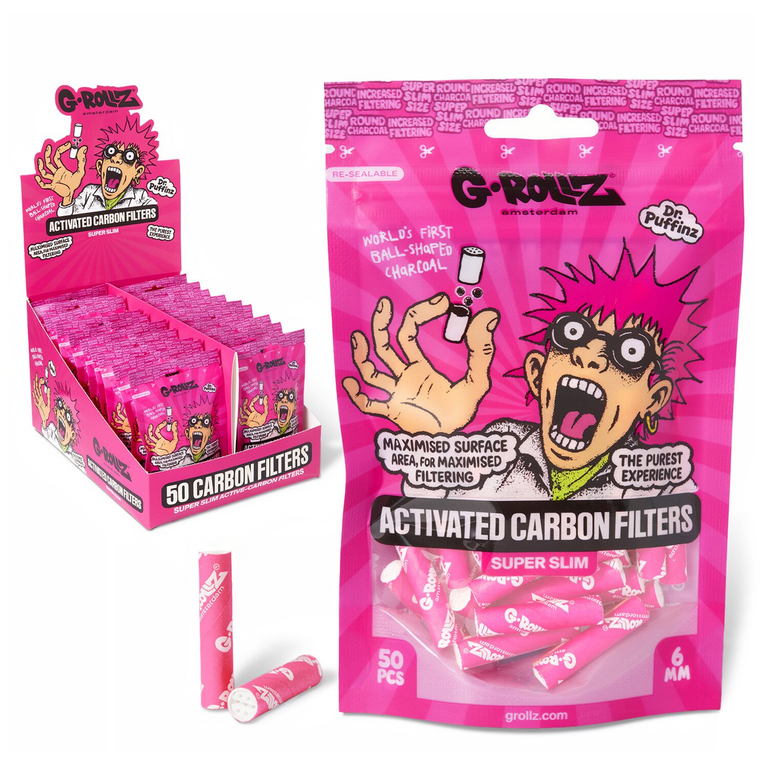 G-Rollz | Activated Carbon Filters - Ø6mm Pink - 50 Tips per Pack