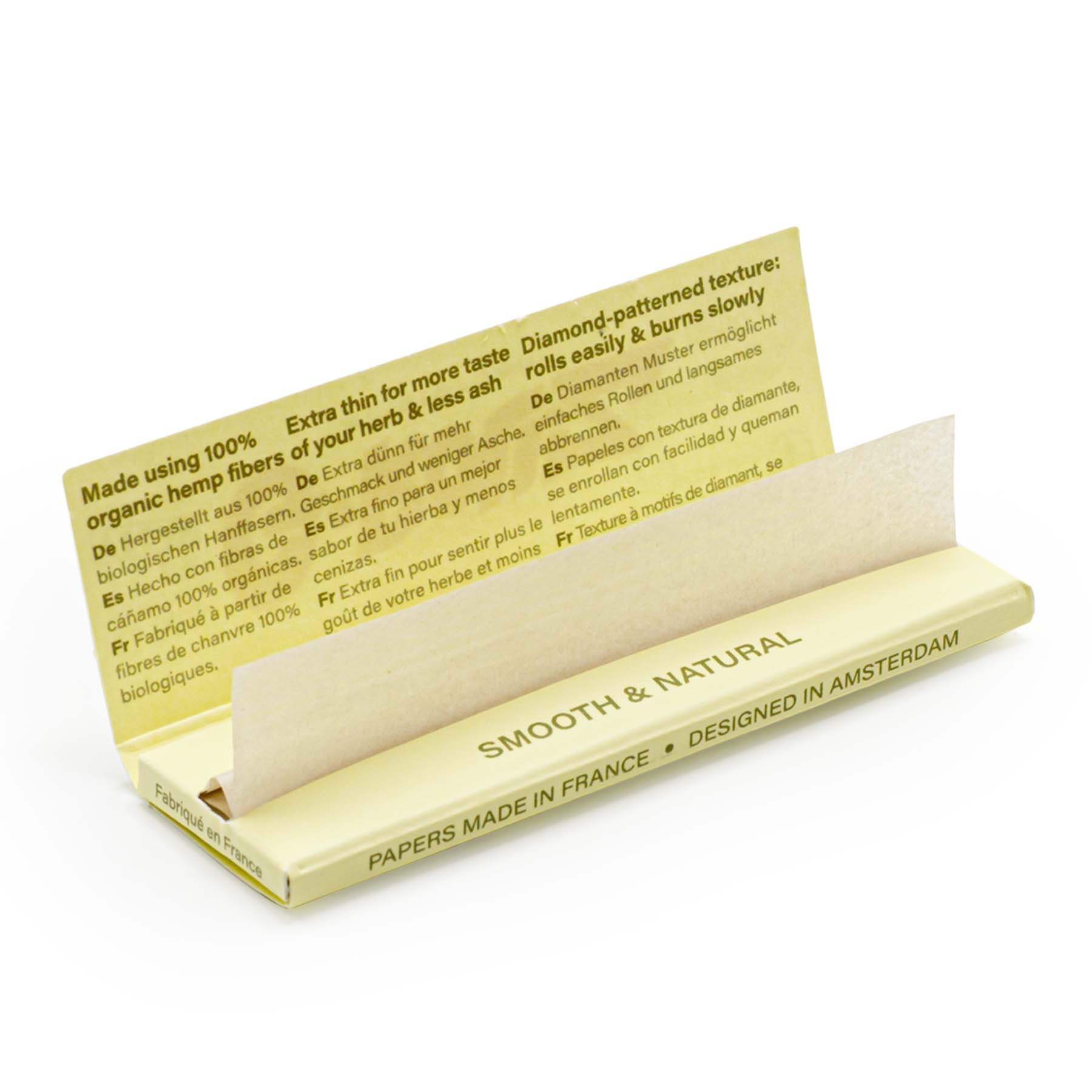 These G-Rollz papers are crafted in France using finely pressed organic hemp fibers and acacia tree sap as an all-natural gumline. All ingredients are natural to provide a pure rolling experience.